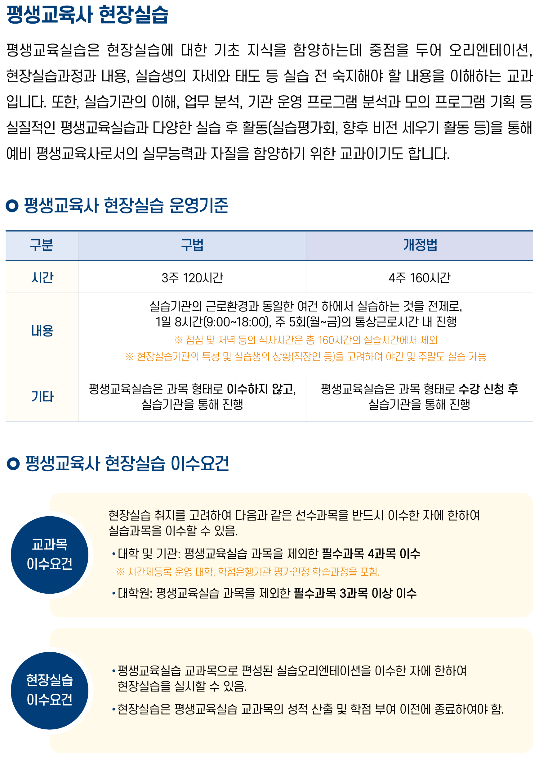 국가평생교육진흥원 "평생교육사 현장실습" 안내